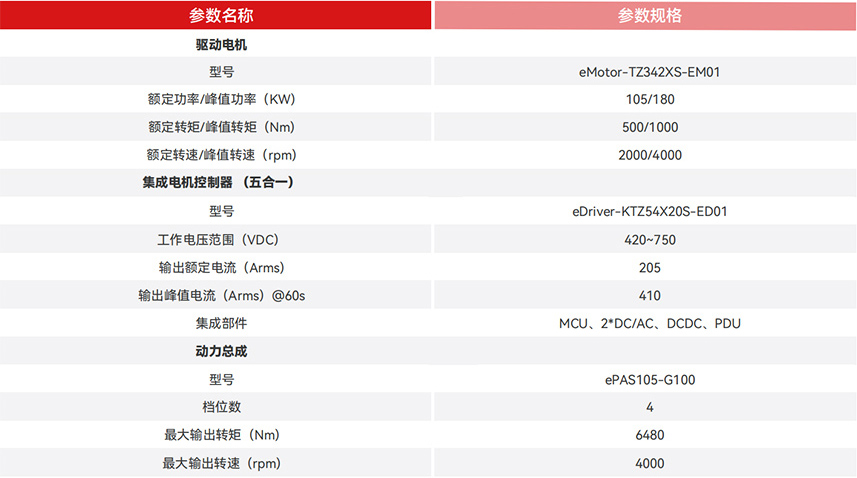 永磁同步電機+4AMT變速箱,調(diào)教優(yōu)化,系統(tǒng)效率高至94%; 180 kW峰值功率、1000 Nm峰值扭矩,動力充沛; 動力優(yōu)于同等級功率電機約8%